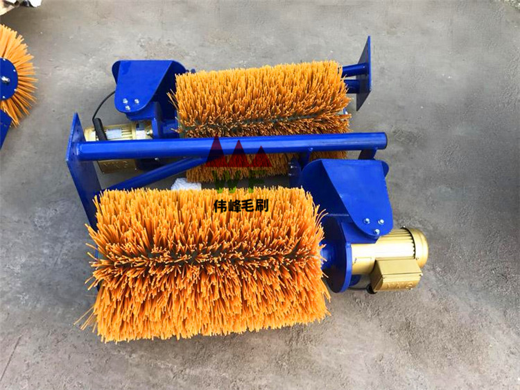 牛體刷用于給奶牛梳理皮毛、瘙癢,減少奶牛牛體上的污垢和寄生蟲,促進奶牛血液循環(huán),從而提高牛奶產(chǎn)量。目前在飼養(yǎng)奶牛的過程中,一般使用的牛體刷,安裝高度受限,使得奶牛可以咬到、舔到電機及刷體以上的其它零部件,這樣不僅會使牛體刷使用壽命縮短,而且對奶牛本身產(chǎn)生潛在安全威脅;然而傳統(tǒng)使用的刷子都是長條狀的,刷起來費時費力,工作效率還低,對工人的健康也有影響。