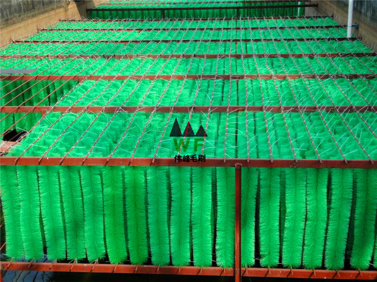 過濾毛刷特點是重量輕、構造簡單、易于清洗、經久耐用;較長時間不清洗也不會堵塞;其粘附異物的功能極強;可以根據不同大小過濾室而選擇不同的毛刷尺寸。毛刷可以同時擔負起物理過濾和生化過濾之功能。高密度的毛刷可以擋住大部分魚池中的固體廢物及懸浮物,同時由于毛刷上面極易附著大量的凈水微生物而往往被人做為生物濾材。